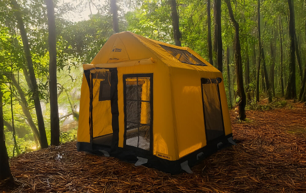 Compact yet durable, it combines waterproof, fire-resistant, and antibacterial materials with a high-strength inflatable frame that sets up in minutes.