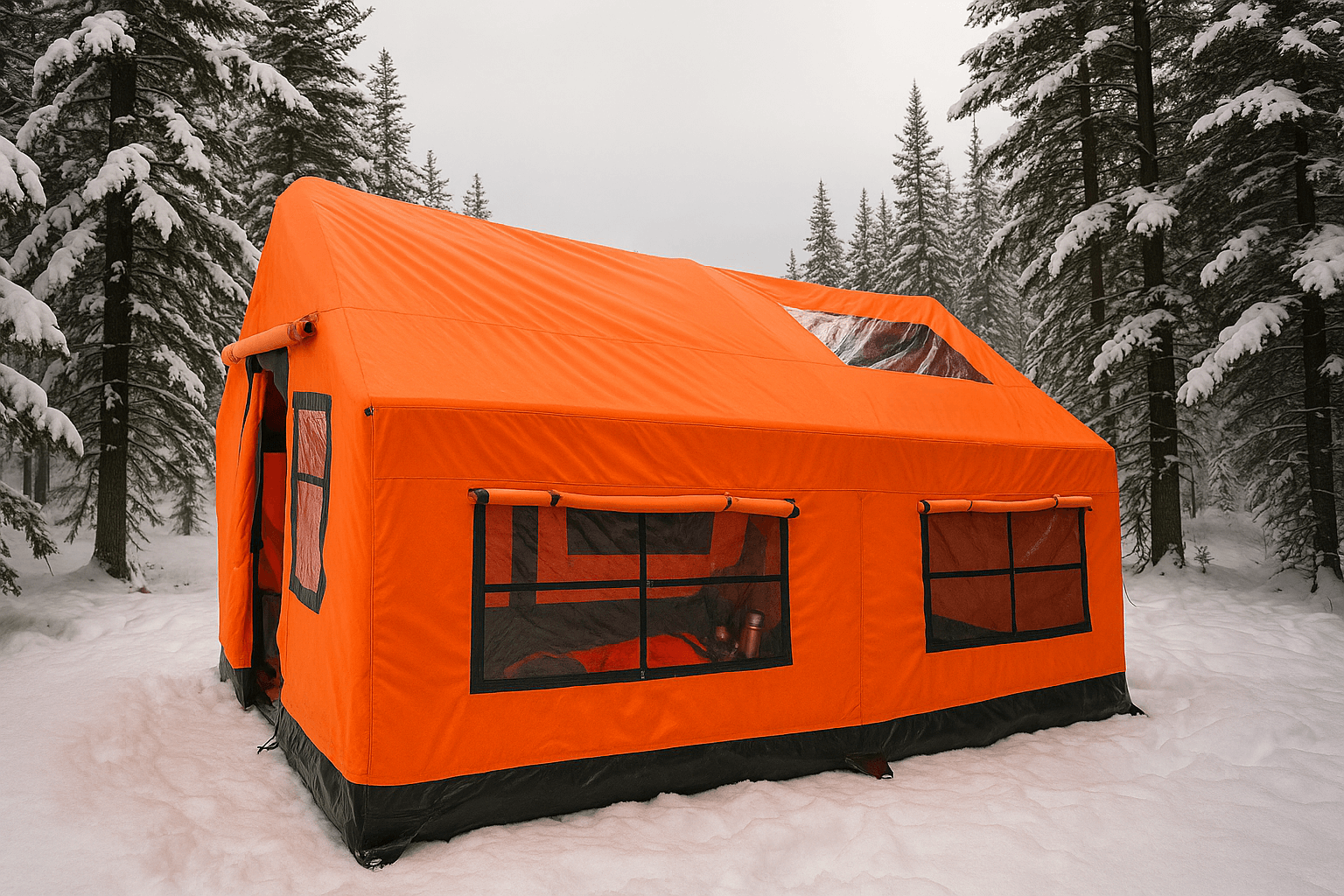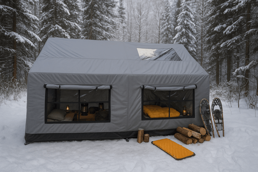Designed for extreme climates and four-season reliability, this large inflatable cabin maintains stable indoor comfort all year.