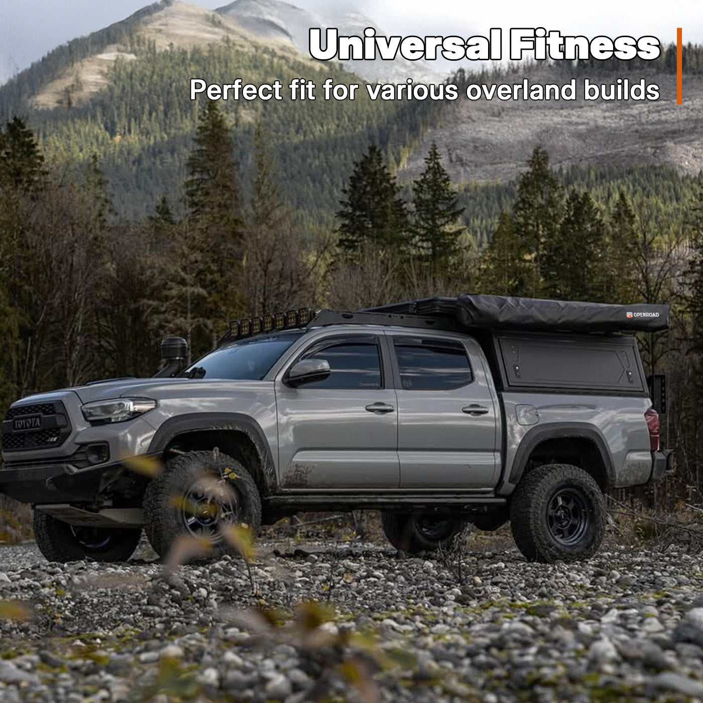 Every OPENROAD 270° Awning includes a full installation and accessory package designed to fit nearly any roof configuration. Whether you’re running crossbars, a roof platform, or a bed rack, our versatile mounting hardware ensures a quick, secure setup — no extra parts required.