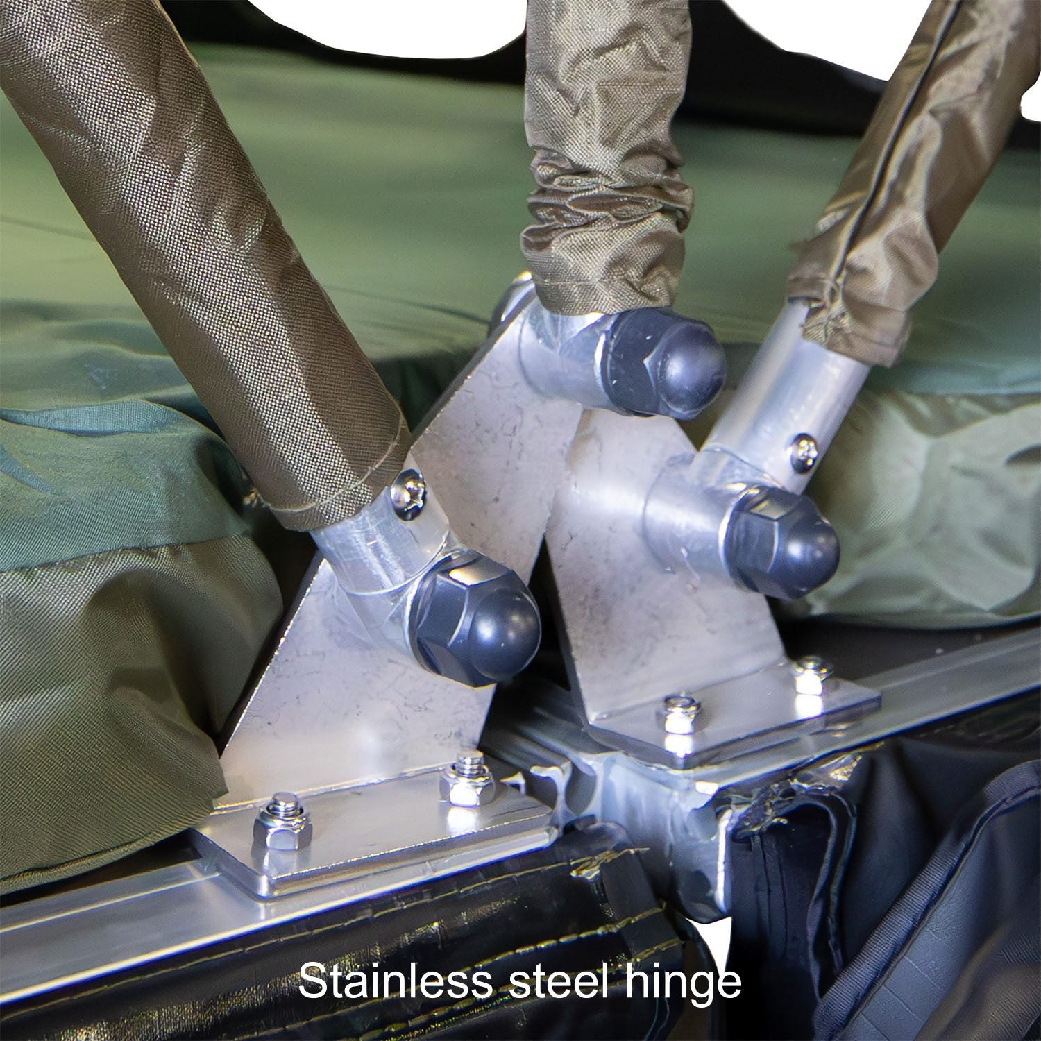 Reinforced bar-tack stitching, stainless steel hinge components, and a polyester-wrapped frame ensure long-term reliability under repeated use.
