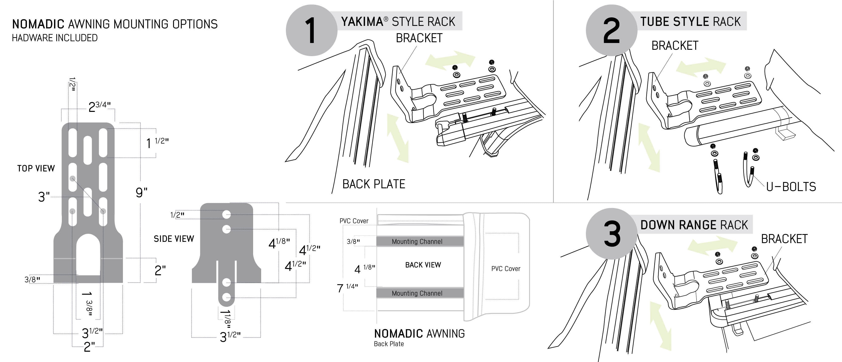 Works with any roof rack or crossbar system capable of supporting awnings