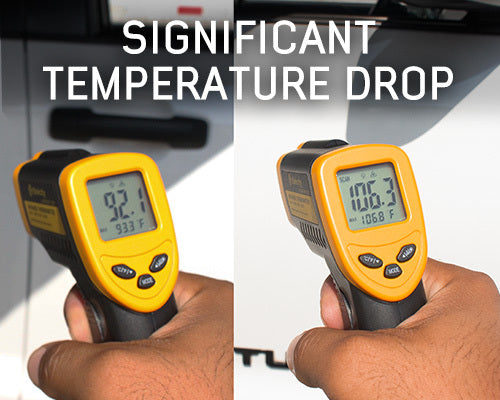 Significant temperature drop under canopy for cool, comfortable shelter