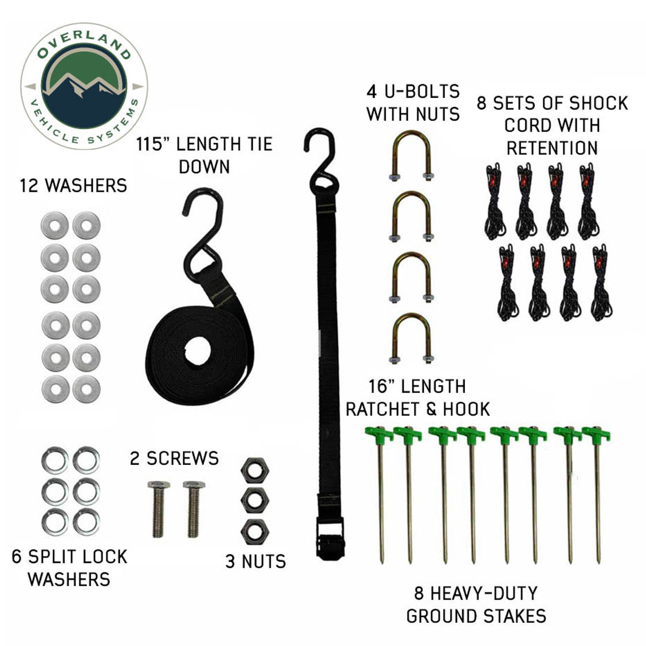 Included Accessories: Awning Organizer, Mounting Hardware, Guy Lines, Stakes